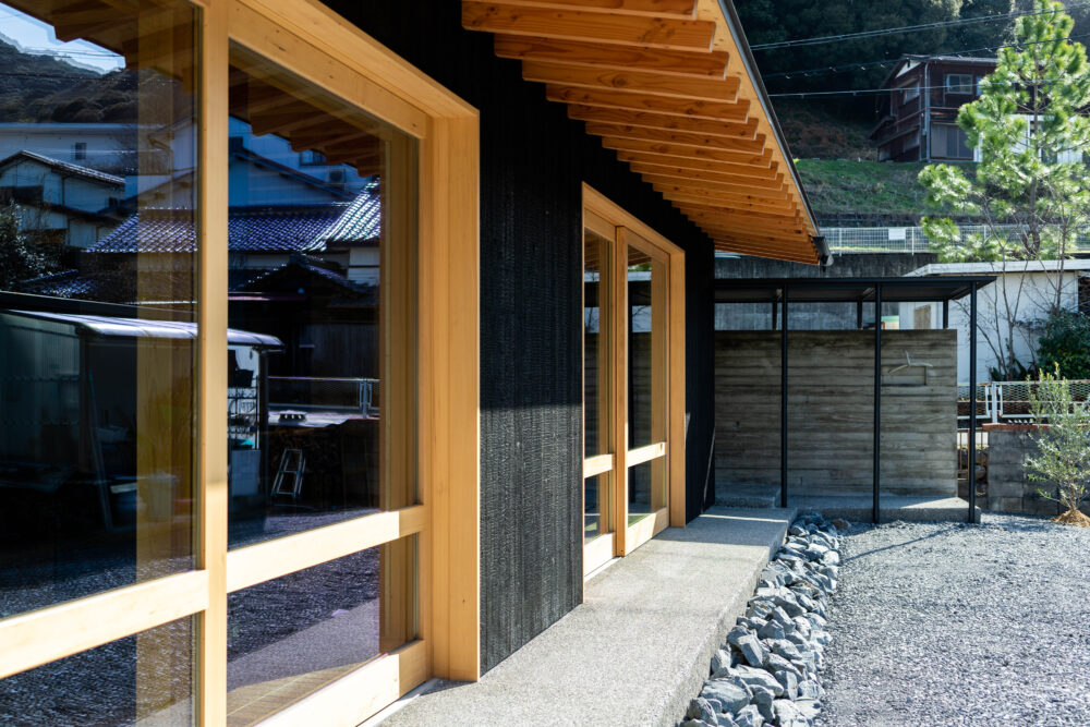 登山コースを行き交う人の気配が日常に溶け込むこの場所では、景観にどう馴染ませるかが重要だと感じました。その想いはお施主様とも自然と一致し、外壁は焼杉板張りに。